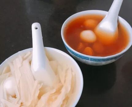 腐竹鹌鹑蛋糖水、番薯糖水、芝麻糊等