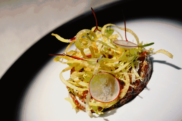 烤鸭般外脆里嫩的澳洲老饕牛排是这里的招牌美味,法式创意铁板烧保持着法式的优雅又融合了大厨对菜品新的认知,烟雾缭绕下的微熏法国鸭肝给人带来美味与视觉的双重享受。