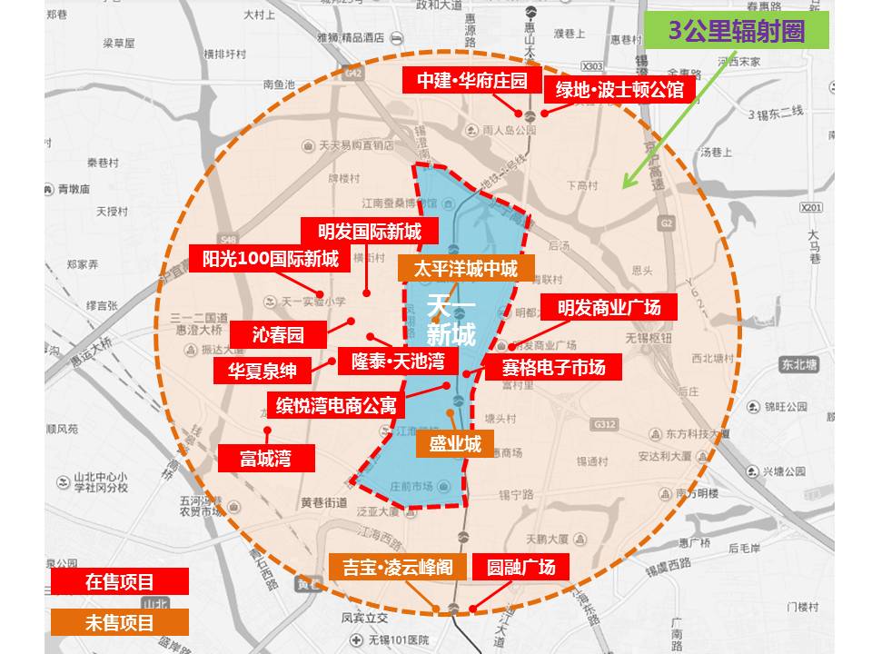 惠山新城有万达、迪卡侬,锡东新城有宜家、荟聚,太湖新城有海岸城、万象城,同带“新城”两字的天一新城,你似乎还缺点什么?对的,就是商业。虽然赛格电子市场已经开业,但其功能毕竟和老百姓的生活有点远,目前天一新城及其周边3公里范围内主要的商业配套还是依赖沿街商铺,这些小商业能够满足业主最基本的日常衣食住行需求,但像马先生那样晚上想要吹会免费空调的,就只能前往惠山万达或者干脆去市区了。虽然马先生房子已经买了,但是庆幸的是,他的第四个条件——最好周边能有大商场,不久以后也将实现。
