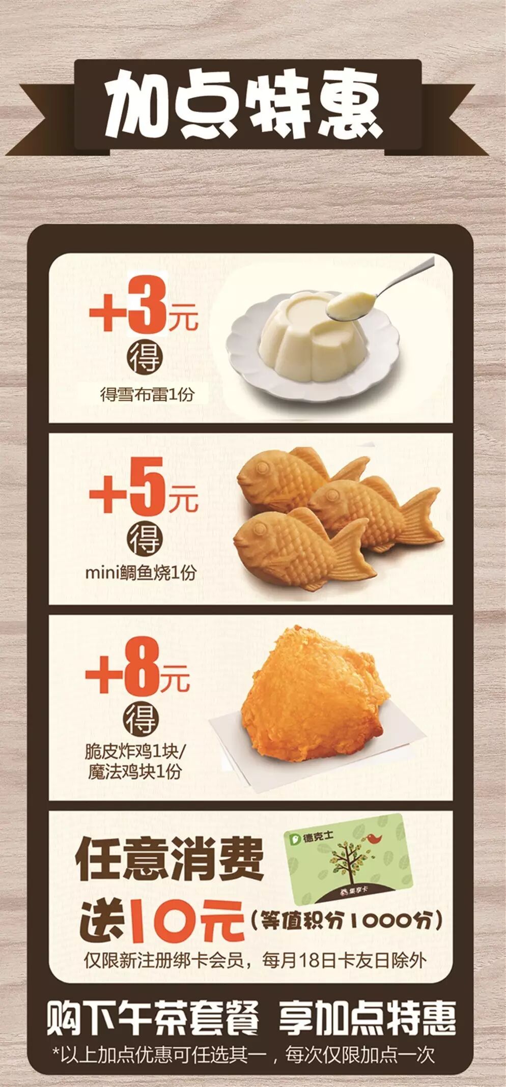 1、河南省德克士餐厅(火车站、景区餐厅除外)。
