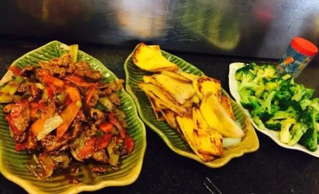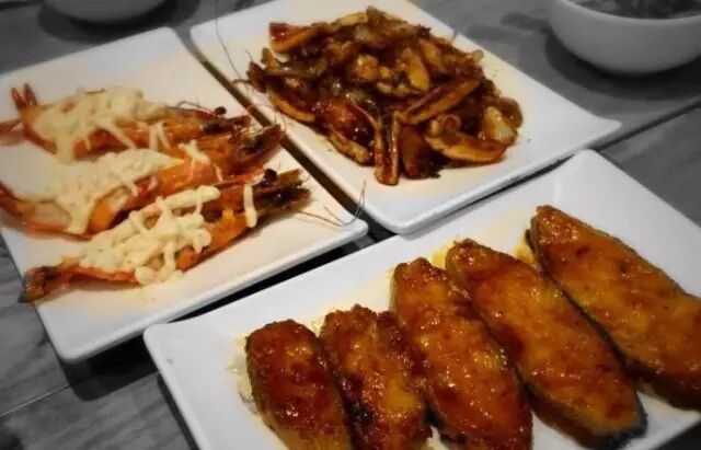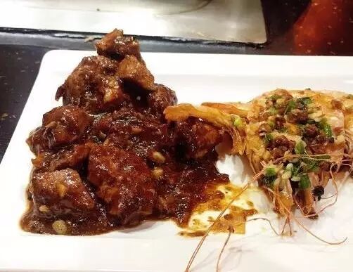 分量足足的铁板牛肉鲜嫩多汁,搭配西芹,胡萝卜,颜值很高!火焰红薯配上浓厚的炼乳,香气实在太过诱人,减肥神马的暂时先不管啦~,柠汁草虾,虾很新鲜,酱汁入味,拔掉虾头蘸蒜蓉酱好吃到飞起~。脆皮鸡排、铁板鸡胗也都很很美味,店里现在还有水果和饮料自助,可以清口,但是我还是最爱冰镇可乐。