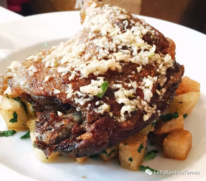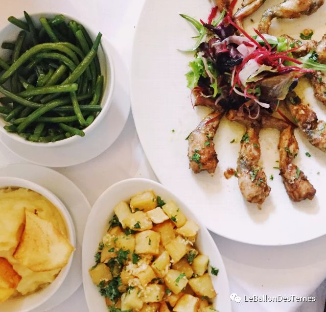 蒜香蛙腿,作为法国南部地区的地道料理,是让法餐享誉世界的又一代表作。而Le Ballon des Ternes 的出品,虽看上去和外面的“妖艳贱腿”没什么不同,但入口很神奇,腌制过的蛙腿变得很有弹性,鲜嫩可口。但是和国内的做法比起来风味不足,可能有的客人会觉得此菜有点平淡。