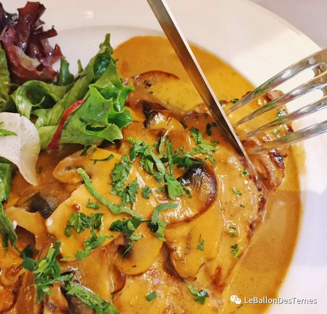 三道主菜中我最为喜爱的莫过于诺曼底酱香小牛犊肉(Escalope de veau à la normande)。酱汁好到不给人活路。