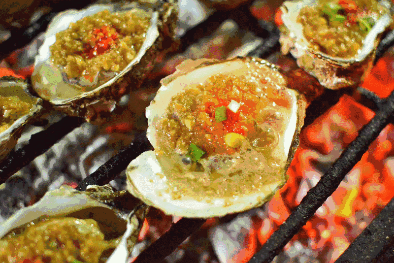只需将蒜蓉、姜末、酱等佐料放入刚刚撬开的生蚝内,再直接放到火上烤熟即可,最大限度地保证了蚝肉的新鲜还增加了蚝的野味感觉 。