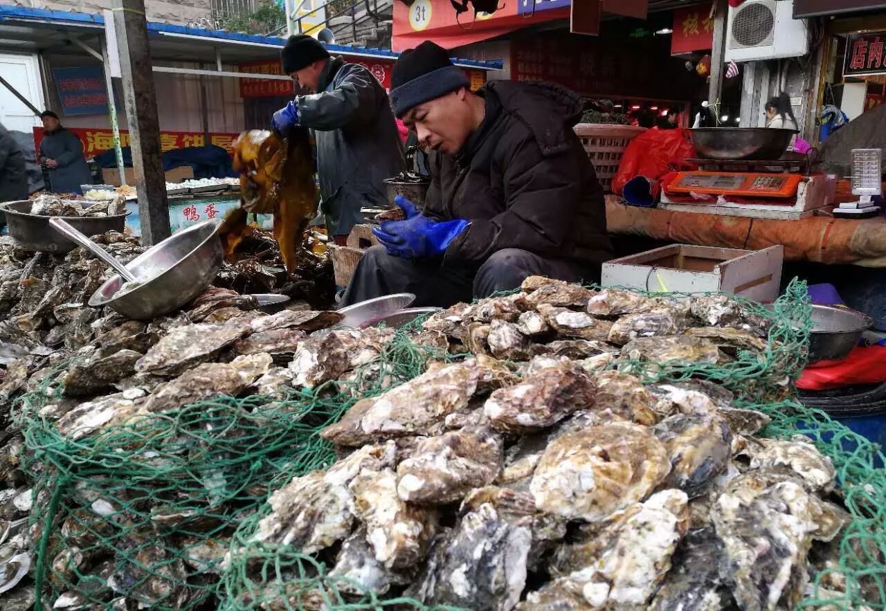 海鲜市场、菜市场随处可见海蛎子的身影