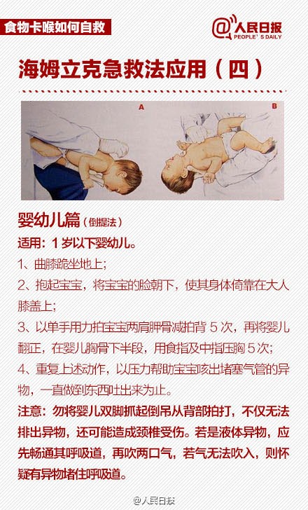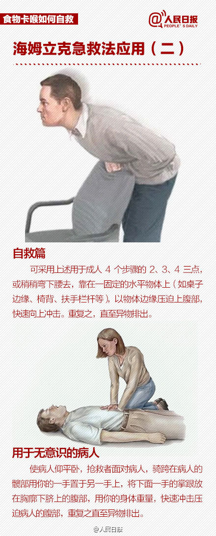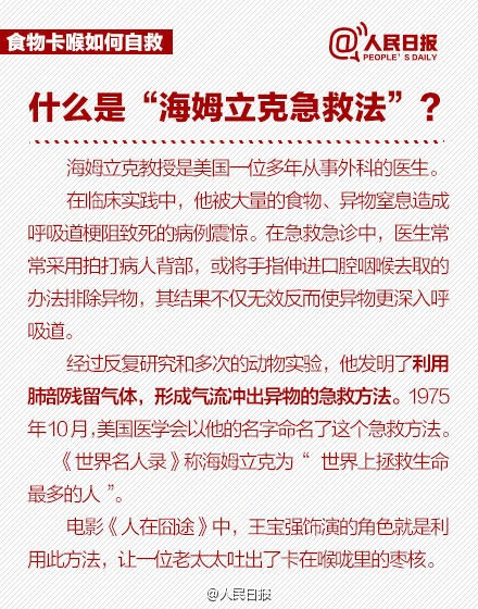 正在这千钧一发之际,她的邻居一位70岁的老人,刚刚在报纸上读过一篇介绍亨利•海姆立克医生发明的气管异物急救的科普文章。