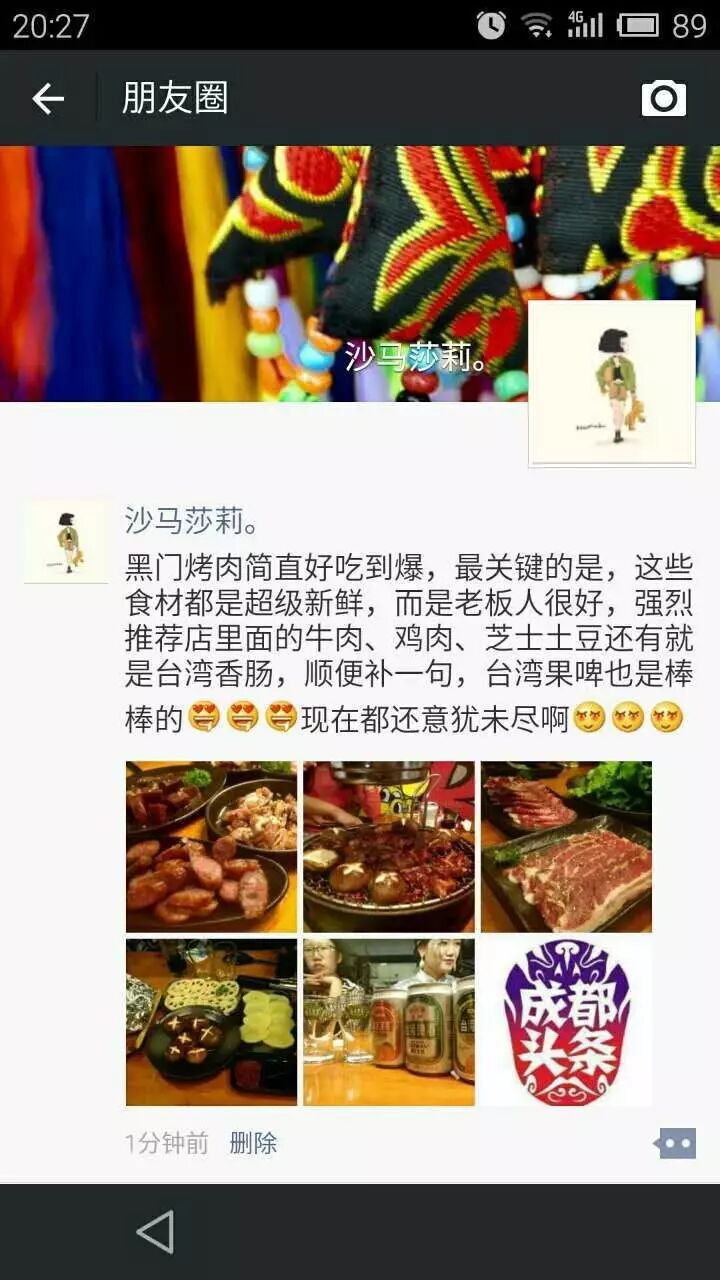 在火盆烧烤还没进入成都之前,也就只有新疆大妈这种路边烧烤会用炭火。后来又出现铁板烧,中途也有几家店尝试使用炭火,但是出于安全考虑,都停止了。直到头条君发现黑门烤肉!烧烤的感觉一下子就凸显出来了!跟朋友一起过来吃烧烤~感觉真的棒棒哒!!!
