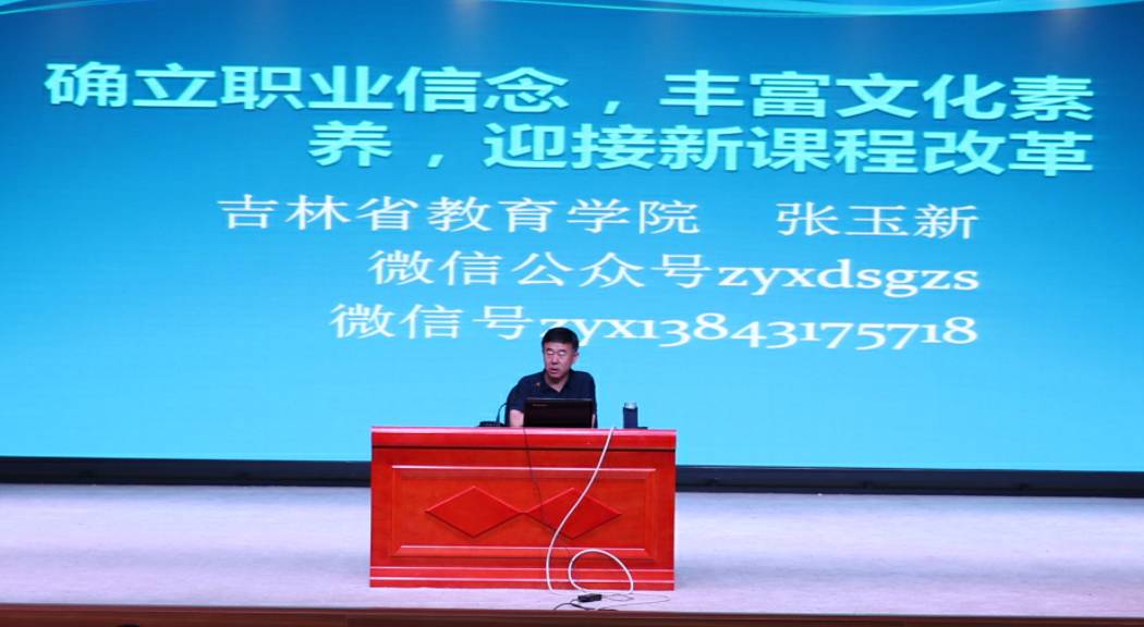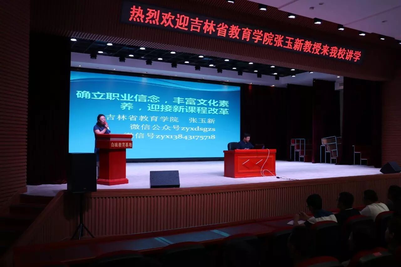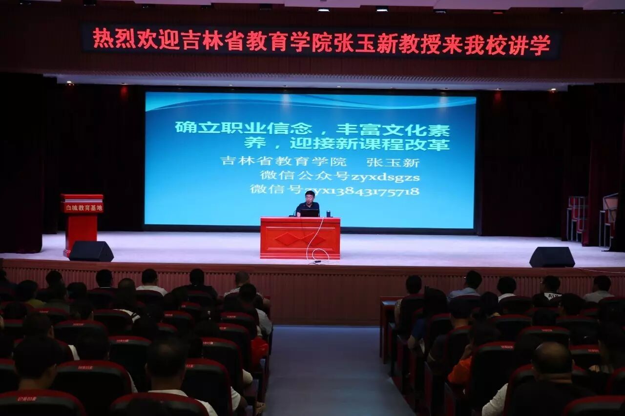 雨霁天晴,久旱的鹤乡大地刚刚经历了一场风雨的洗礼。8月4日,白城毓才实验学校有幸邀请到了吉林教育学院张玉新教授,在白城市示范性综合素质教育基地为我校小、初、高三部全体教师作了题为“确立职业信念,丰富文化素养,迎接新课程改革”的专场讲座。