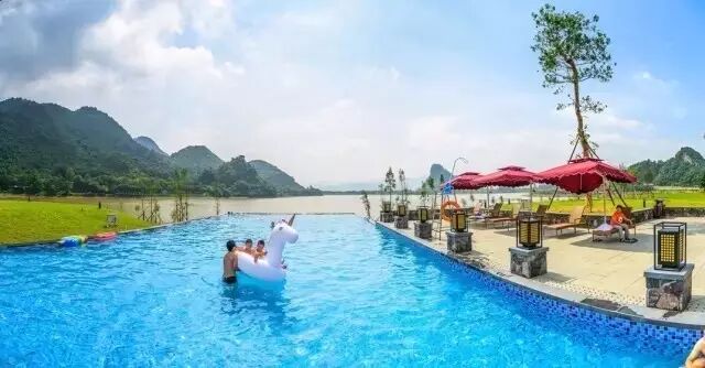 东南亚茶树园林风格的湖畔泳池,是无法抗拒的诱惑,原野原湖风韵,人间难得几回赏?