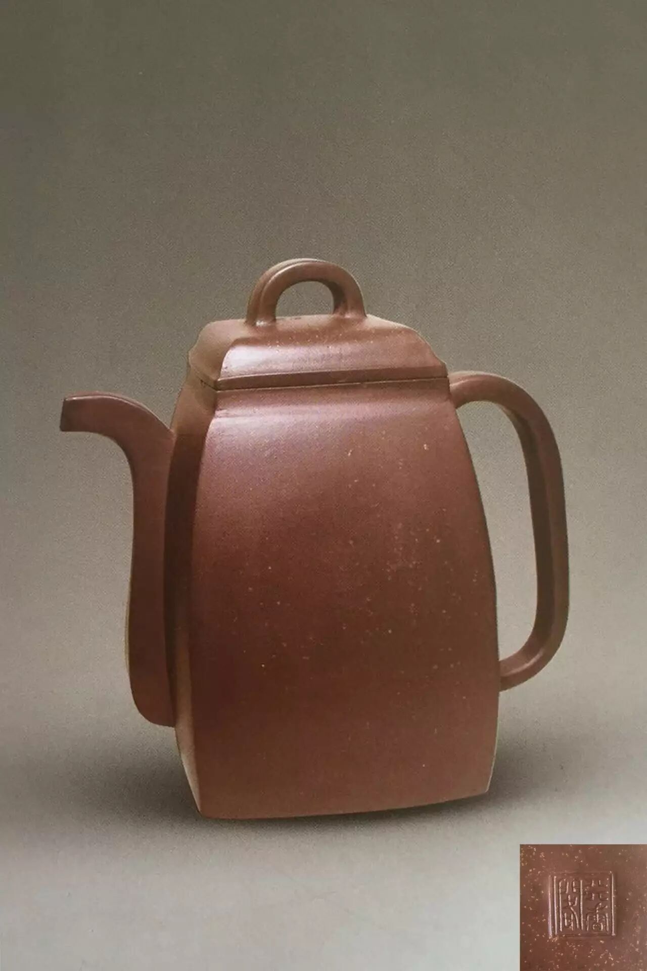 汉方壶式是紫砂壶中历史最悠久的传统造型之一。“阳羡茗壶录”记载:邵文金,仿时大汉方独绝,徐友泉亦制汉方,清代华凤翔、徐飞龙等都有汉方壶传世。时至今日,仍有紫砂艺人制作此款式。上世纪八十年代,宜兴紫砂工艺厂也曾生产过汉方商品壶。