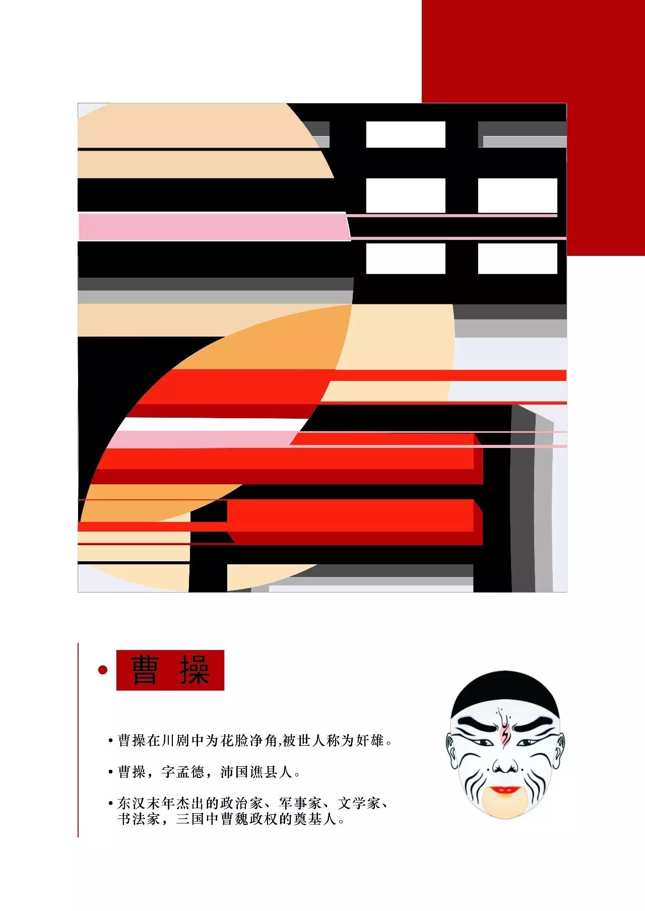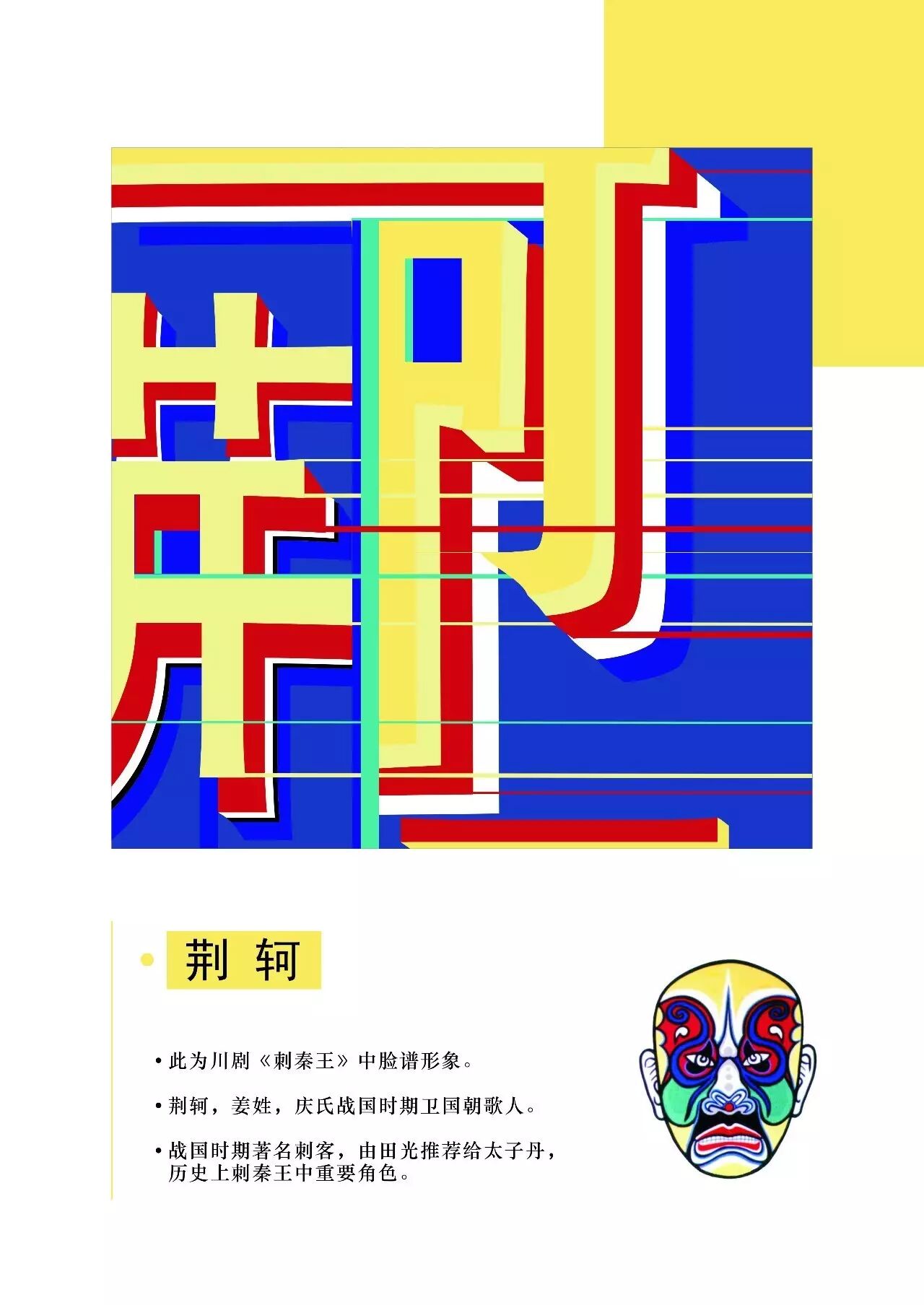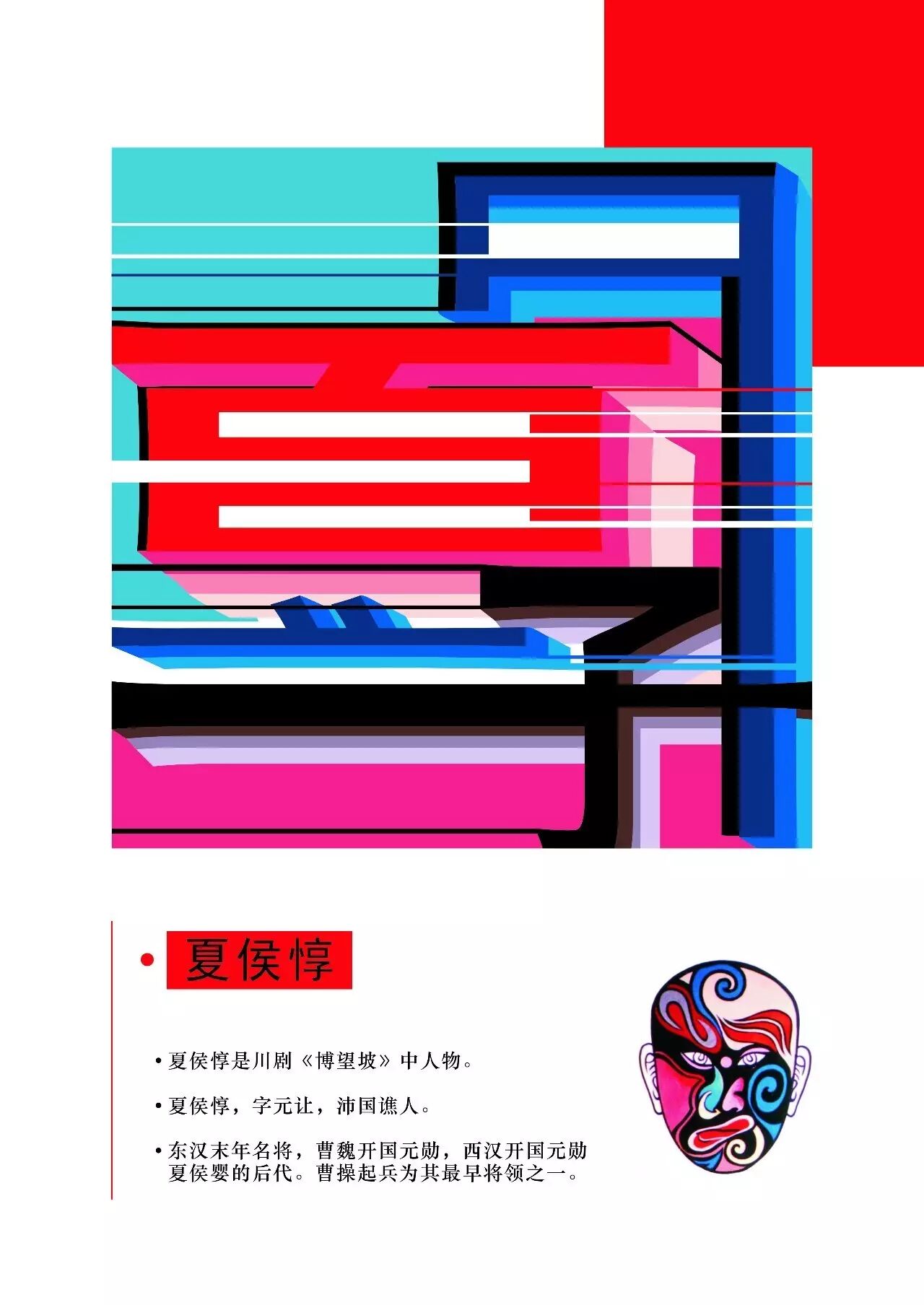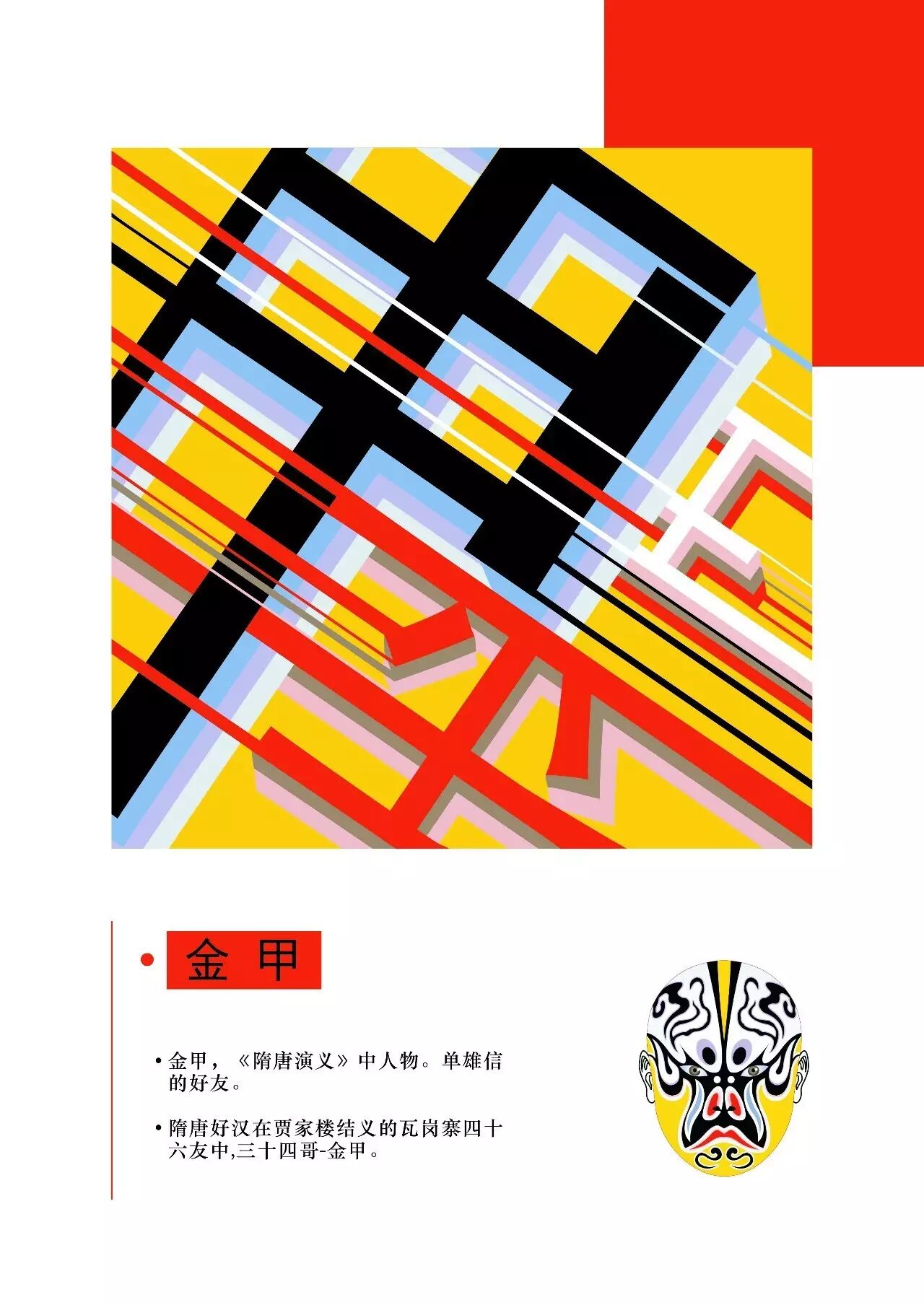 汉字虽然作为我们日常交流的文字,每时每刻都在运用,出现在我们生活中的各处,但是我们却很少去发现汉字的美和它的历史。以字体和图案的设计为研究对象,与川剧脸谱的色彩相结合,运用脸谱相对应的角色名进行设计。例如将角色名的字进行变化,作品的色彩运用字体相对应的川剧脸谱中的色彩,在设计中注重字体的分解、重构和变形。不仅仅局限于平时字体图案设计的平面式展示,除平面方式外,还以立体的方式呈现。以新的表现形式让人们“慢”下来关注我们的文化。