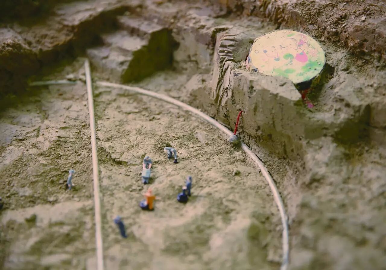 《寻》根据“温故而知新”的基本含义,用模拟考古现场的设计思想,首先要表现的第一层含义是“逝去的童年”,即为“故”。随着手机的普及,越来越多的“低头族”,都市的人群不论何时何地,手机不离手。由此,《寻》的第二层含义便是“淡化的情感交流”,这个问题基于我们的童年是一个新的问题,一个需要引起我们所重视的问题。正因为如此,《寻》有了第三层含义“埋藏”。将属于童年的的记忆埋藏起来,为的是让我们寻逝去的童心。即将离开校园的我们,随即就要踏入社会,不免会变得世故圆滑,多一份成熟。但其实人人都应该保持一份童心,这是弥足珍贵的。玩具或许可以失而复得,但是情感和人是不可复制的,当我们小心翼翼的挖掘的同时,当我们寻回记忆的同时,当我们重新得到的时候,我们最终收获的是如何“珍惜”。
