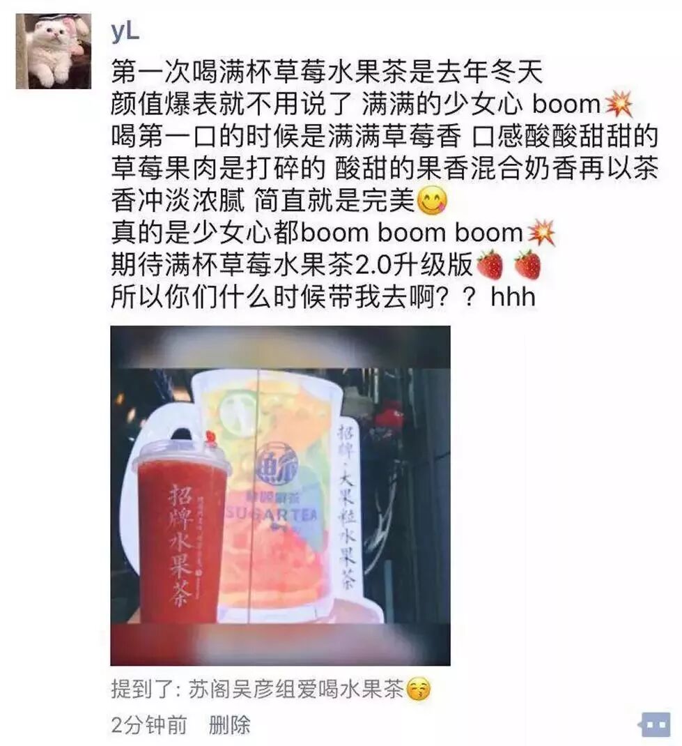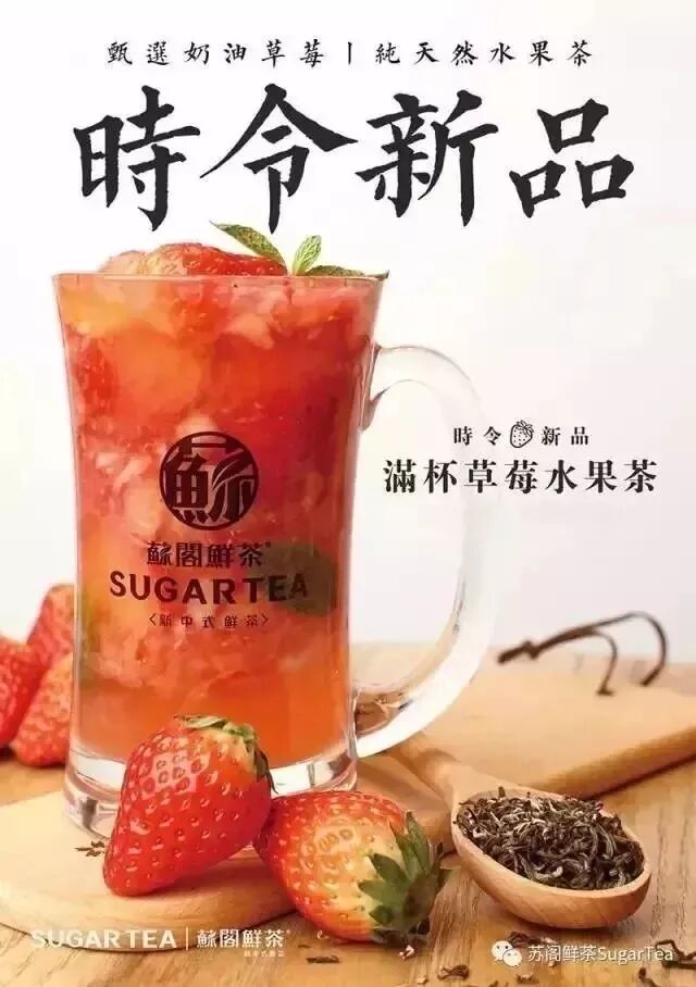 苏阁鲜茶采用著名的“奶油草莓”作原料,每天新鲜的草莓从草莓场直接到店,保证原料新鲜!