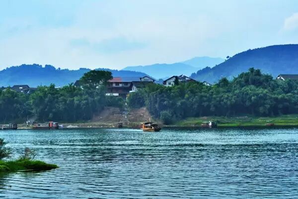 古镇置身于融江之中,四面环水,山怀水抱,犹如镶嵌在青山绿水中的一颗翡翠,整个岛绿色覆盖的面积达百分之八十以上。