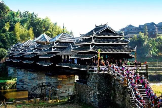 程阳永济桥相信大家都不陌生,它被誉为中国古代四大名桥之一。风雨桥是侗族建筑的集大成者,集桥、廊、亭三者于一身,在中外建筑史上独具风韵。风雨桥象征飞龙绕寨,以保年年风调雨顺,五谷丰登,吉样平安。