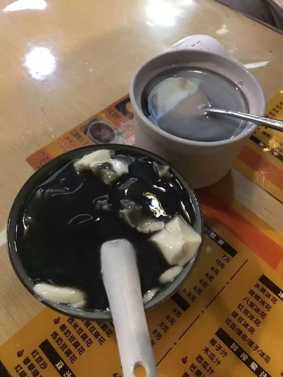 芝麻糊和豆腐花的搭配意外的还不错,虽然画风略显黑暗= =。一口下去,既能吃到豆腐花的浓郁豆香,又能尝到芝麻的味道,很不错。